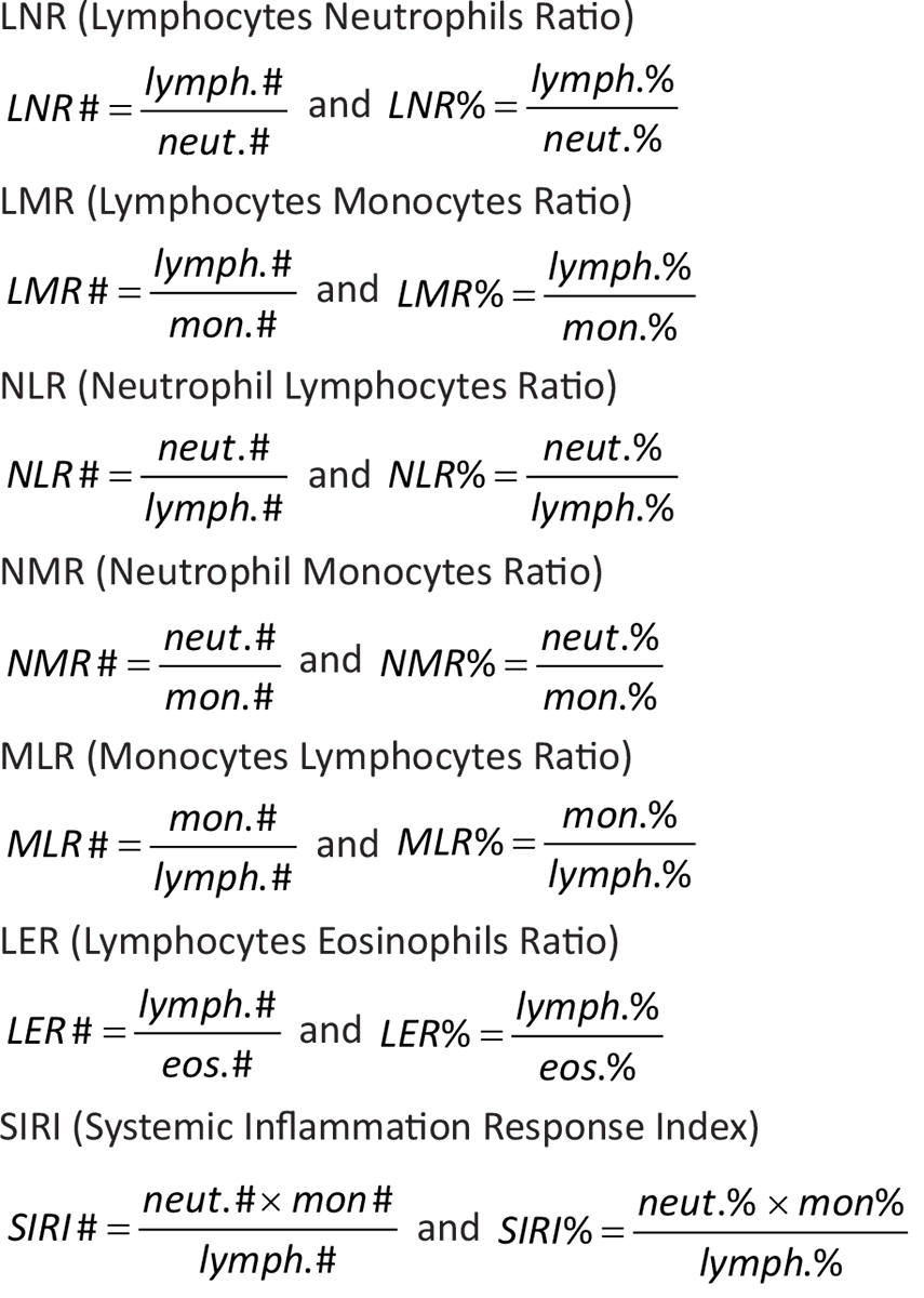 ratio (LMR), neutrophil lymphocyte ratio (NLR), monocyte lymphocyte ratio (MLR), and systemic inflammation