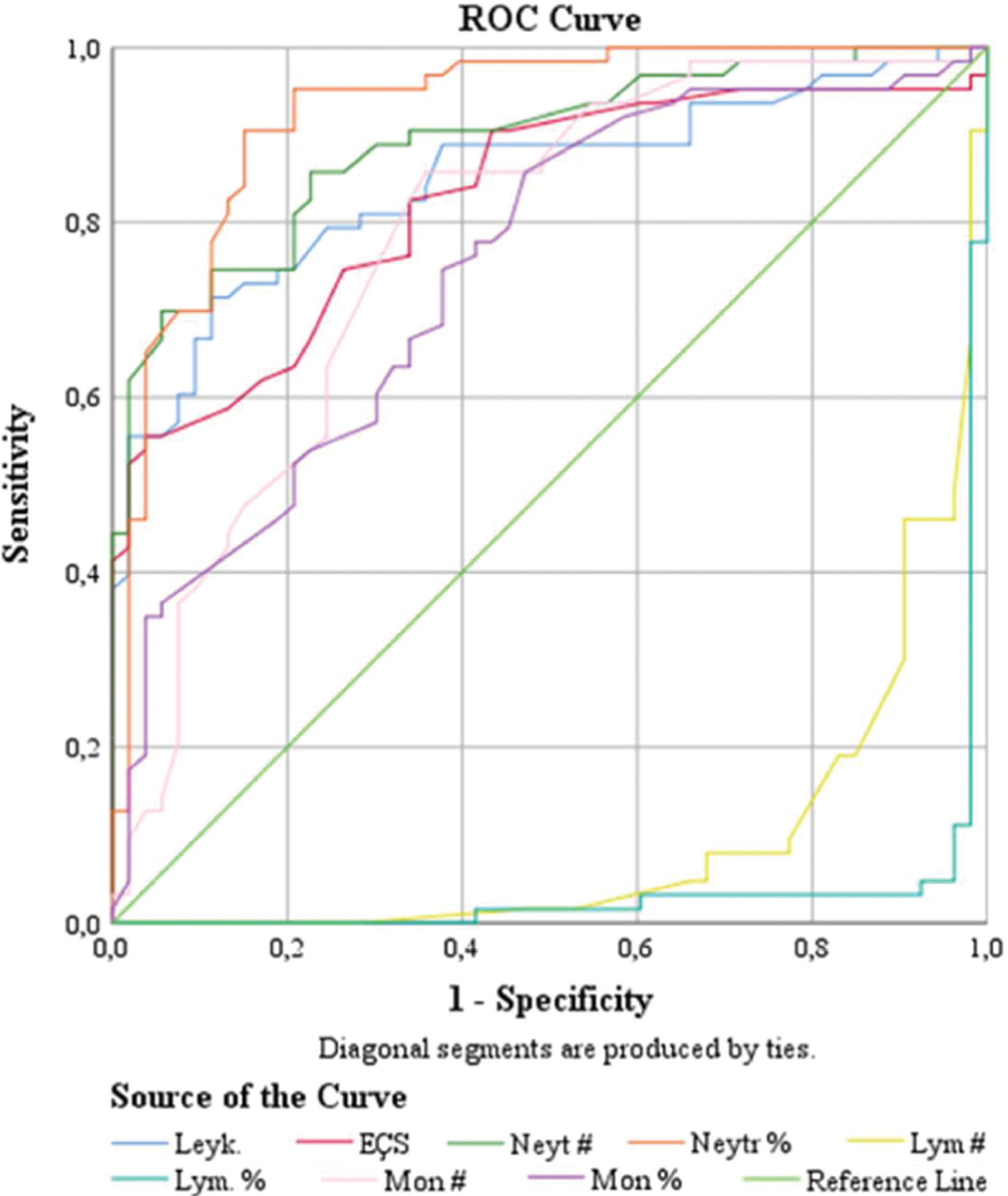 A comparative evaluation of ROC analysis with NLR (#) and SIRI (#) as a marker of CRP, which is recommended for use in the diagnosis of ACC, is given in Table 6.