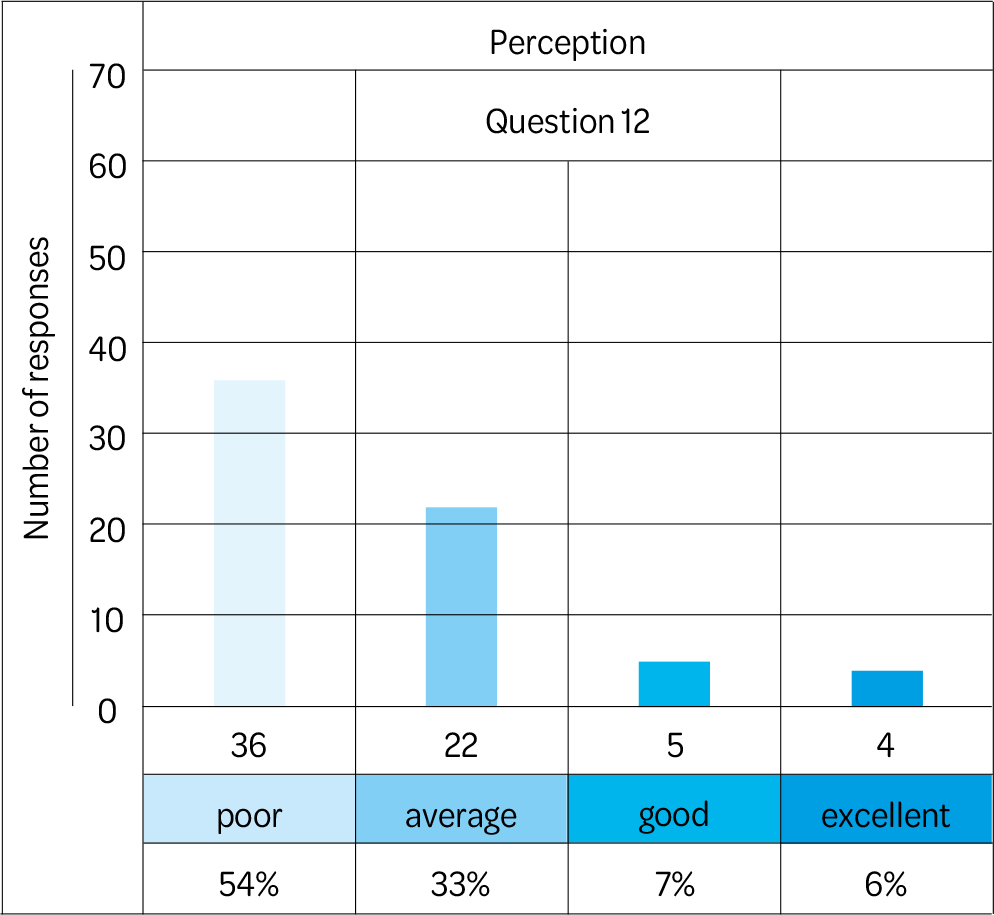 Fig. 12. Graph showing the responses to question 12: “Was the child agitated in the ward?”