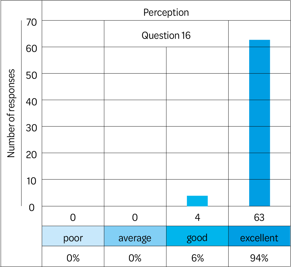 A total of 67 questionnaires were completed; results for individual questions are detailed below.