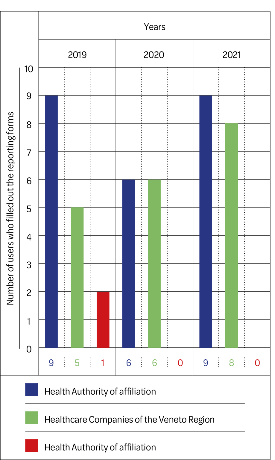 Fig. 22. Breakdown of users who filled out the reporting forms in 2019 based on the local health authority they belong to.