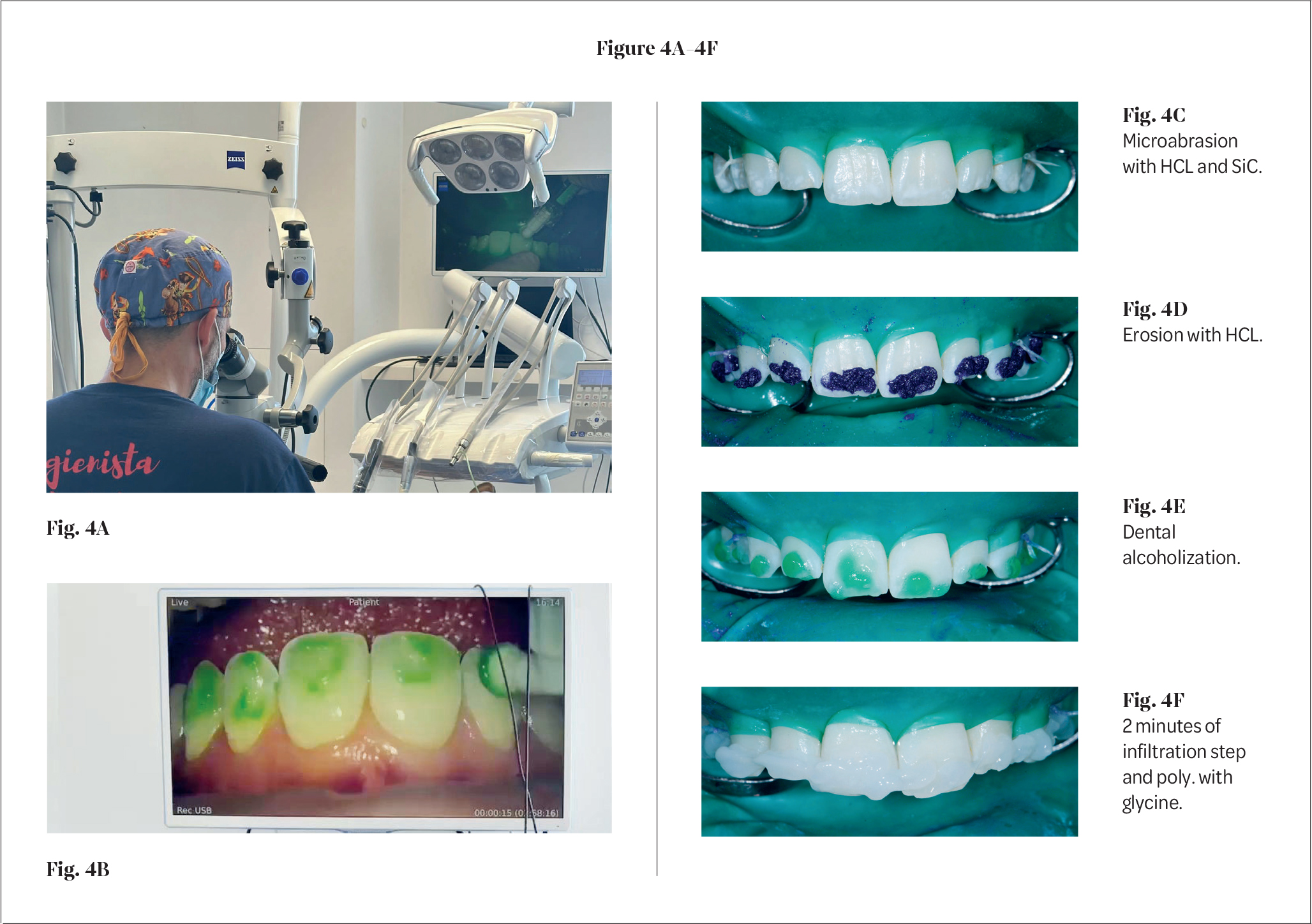 - Application of 15% hydrochloric acid for chemical and selective erosion of the enamel only on the stains to be treated (Fig. 4);
